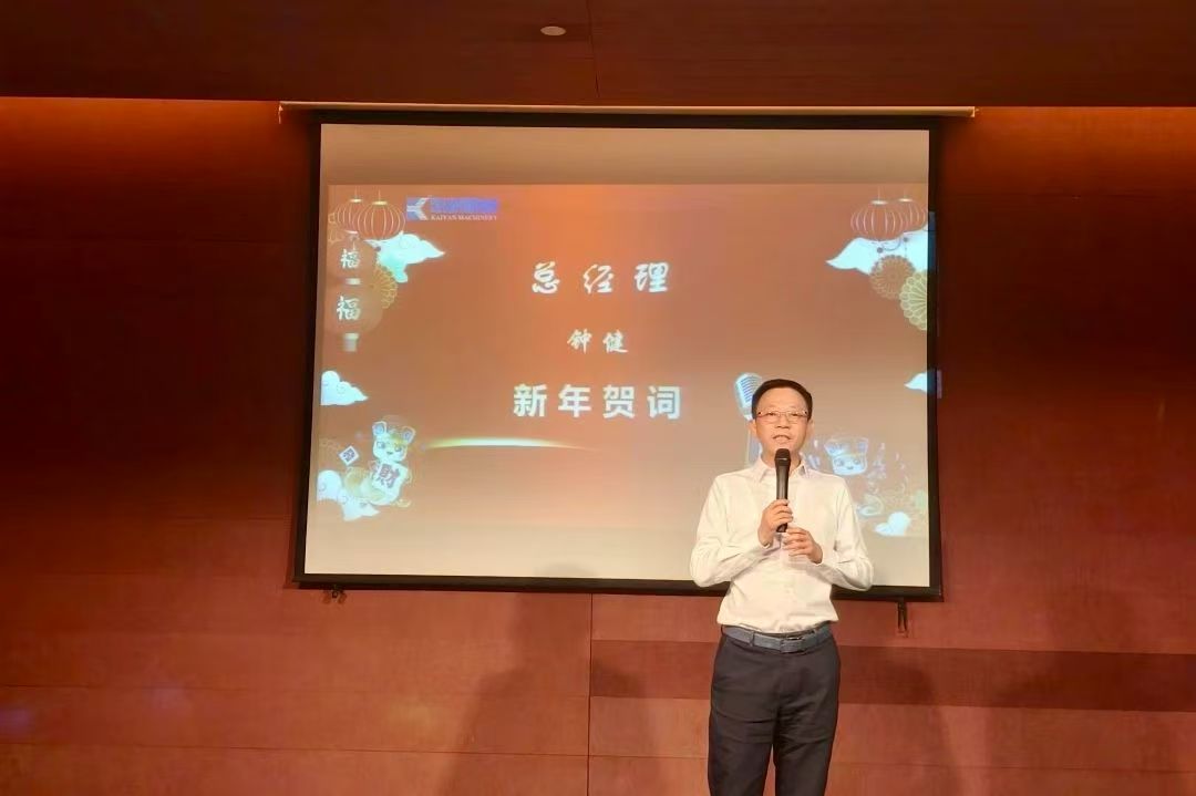 晚會(huì)伊始,凱研機(jī)械總經(jīng)理鐘總送上熱情洋溢的新年賀詞。鐘總的講話不僅飽含對(duì)過往成績(jī)的肯定,更激發(fā)了全體員工對(duì)新一年的無限憧憬和奮斗決心,預(yù)示著2025年凱研將邁上新高度,開啟新篇章。